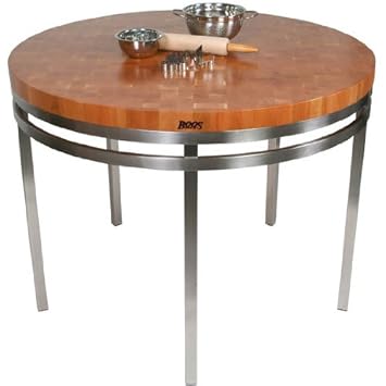 Round Butcher Block Kitchen Table : Jeffrey Alexander Round Petite Kitchen Island with Butcher ... : The top makes it safe for cutting meats.. Oval table tops are available in diameters from 48 to 60 inches. Available in multiple sizes and wood species, the table top comes in your choice of 1/4'' or double radius edging. The wildon home kitchen island with butcher block top is a stylish and functional addition to any home. Rectangular top round edge is standard mission legs are standard 2'' solid top Octagon dining tops vary in diameter between 42 and 60 inches.